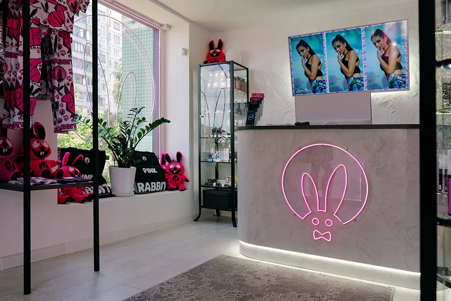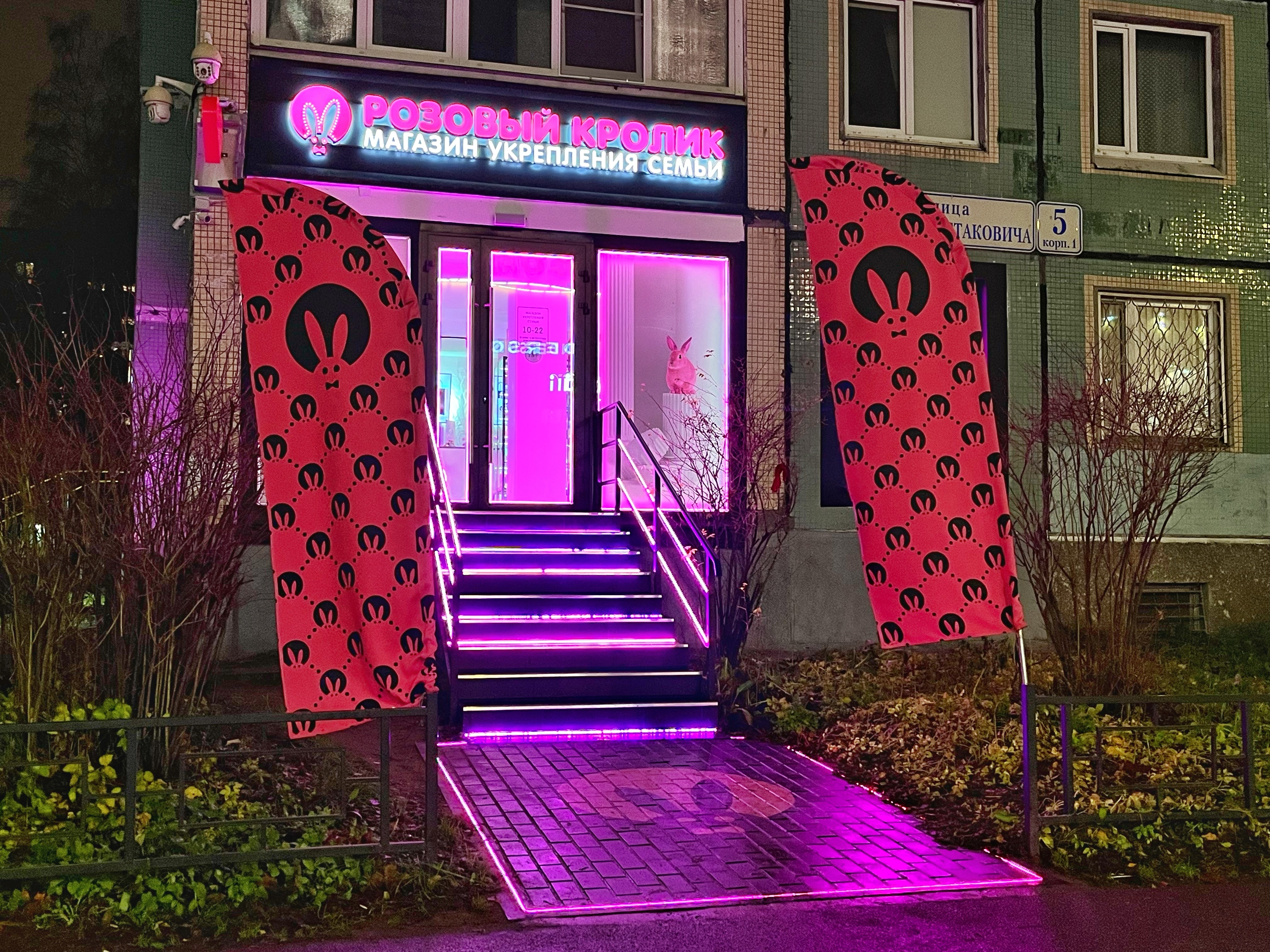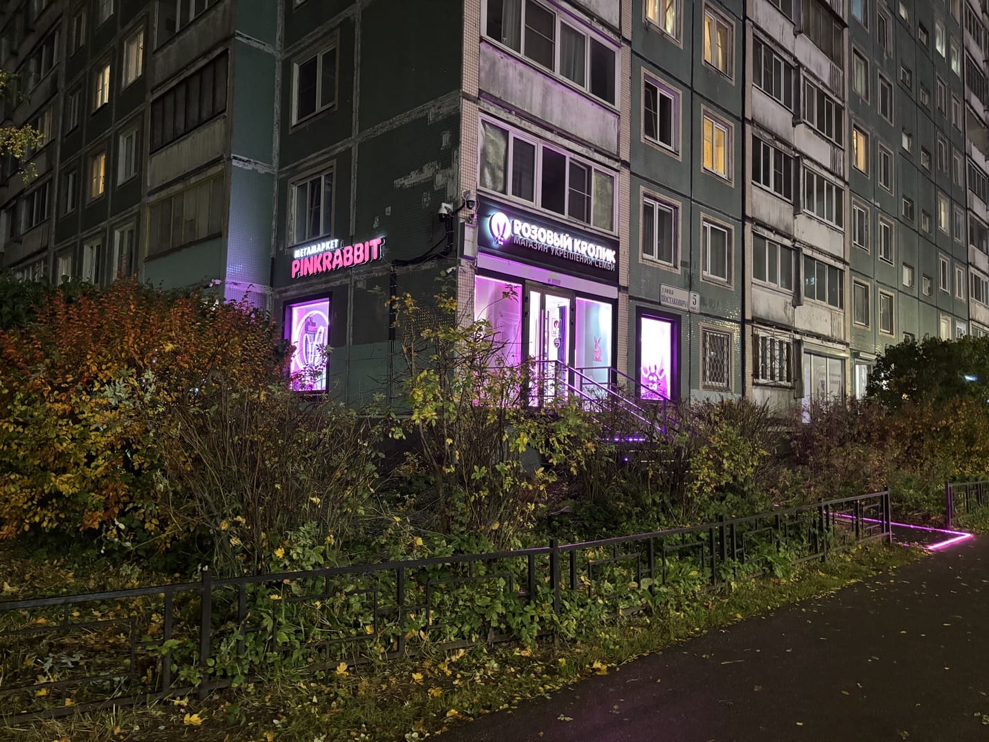 от м. Проспект Просвещения на выходе повернуть налево и пройти 400 м в сторону ТЦ Гранд Каньон. Магазин Розовый кролик находится напротив ТЦ «ГРАНД КАНЬОН», со стороны ул. Шостаковича